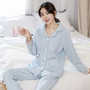 睡衣女秋冬 加厚空气棉家居服套装 加棉v领长袖长裤睡衣两件套
