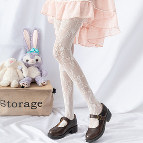 lolita镂空花藤蕾丝网袜打底连裤袜日系洛丽塔复古竖条小花丝袜子