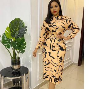 跨境货源2022外贸新款非洲妈妈装长袖印花露肩大码欧美连衣裙