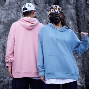 潮牌卫衣落肩重磅套头纯色连帽宽松帽衫空白定印制logo大码工作服