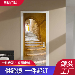 跨境欧式复古台阶门贴3D防水自粘贴纸浴室玻璃装饰墙贴纸一件代发