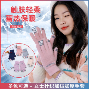 冬季触屏保暖手套女士可爱学生五指手套冬天防寒分指手套