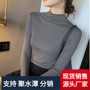 抖音爆款长袖T恤女2022年秋装新款莫代尔打底衫纯色修身高领上衣