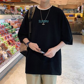 短袖t恤男士2022夏季新款韩版潮流ins宽松体恤中袖五分袖棉质潮牌