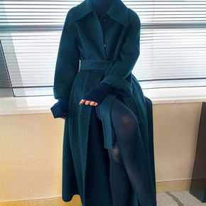 羊绒大衣女2022新款英式时髦范单排扣大A裙摆全澳羊毛双面呢大衣