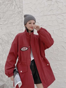 欧洲站工装风衣女2021冬新款韩版宽松收腰加绒贴标派克服休闲外套
