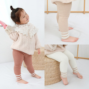 冬季新款儿童珊瑚绒保暖九分裤 横条毛绒打底裤 加绒加厚儿童裤子