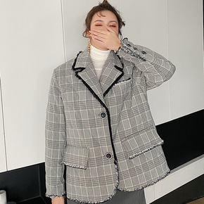 格子毛呢大衣女中长款韩版宽松2021冬季新款学生过膝chic呢子外套