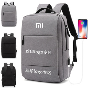 小米双肩包男电脑包书包usb充电背包书包电脑背包印logo商务背包