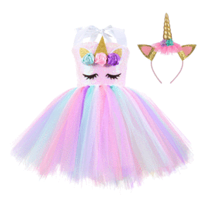 欧美童装独角兽发光女童公主裙LED儿童礼服派对万圣节服装tutu裙