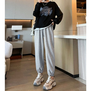 灰色运动裤女2022新款白色束脚裤子女休闲小个子卫裤女春秋薄款