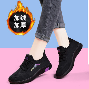 2022秋冬女鞋新款运动鞋飞织单鞋黑色跑步鞋轻便软底女士休闲鞋