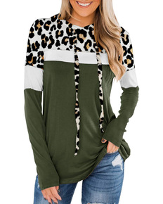 跨境货源2021秋冬欧美女装新款wish豹纹时尚拼接长袖连帽卫衣上装