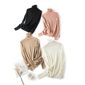 品荣精纺BY杨子100纯羊毛打底衫女韩版高领修身内搭毛衣黑针织衫