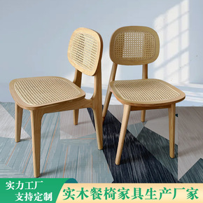 日式藤编餐椅休闲实木餐厅藤椅北欧民宿奶茶店商用设计师靠背椅子