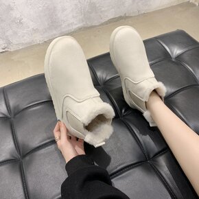 雪地靴女2022冬季新款短筒平底一脚蹬加绒棉鞋休闲舒适短靴批发