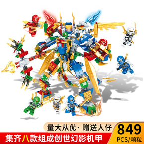 乐多元素龙兼容樂高积木儿童益智拼装忍者机甲8合1人仔玩具小礼品