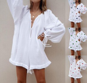 CY-A24跨境欧美独立站ebay2021新款连体短裤印花泡泡袖沙滩套装
