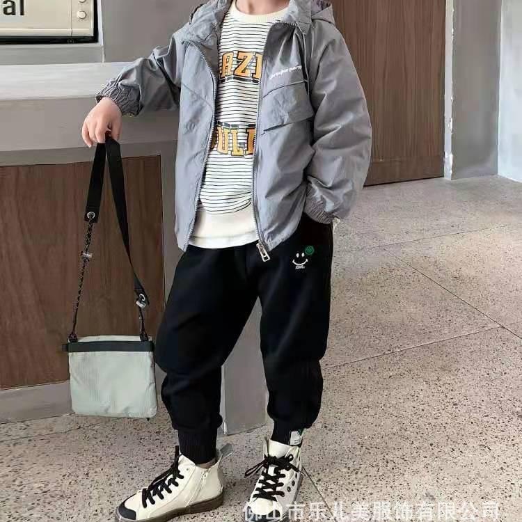 男童加绒裤子2021秋冬季新款运动裤绣笑脸儿童长裤中大童休闲裤子