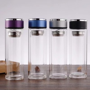 新款双层高硼硅玻璃杯两用盖便携水杯带不锈钢茶漏批发可印制logo
