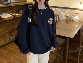 跨境2021韩版新款宽松BF风前后印花古着感无帽流行潮搭长袖卫衣女