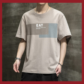 2022夏季新款短袖t恤男潮流宽松帅气半袖体恤纯棉圆领上衣服男装
