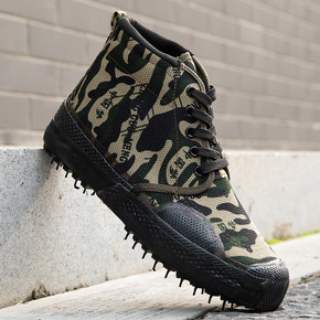 橡胶硫化高帮解放鞋男高帮迷彩作训军训鞋女高帮帆布工地胶鞋球鞋