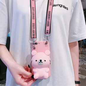 适用苹果13 xs max手机壳iphone14小熊钱包手机壳斜跨挂绳收纳女