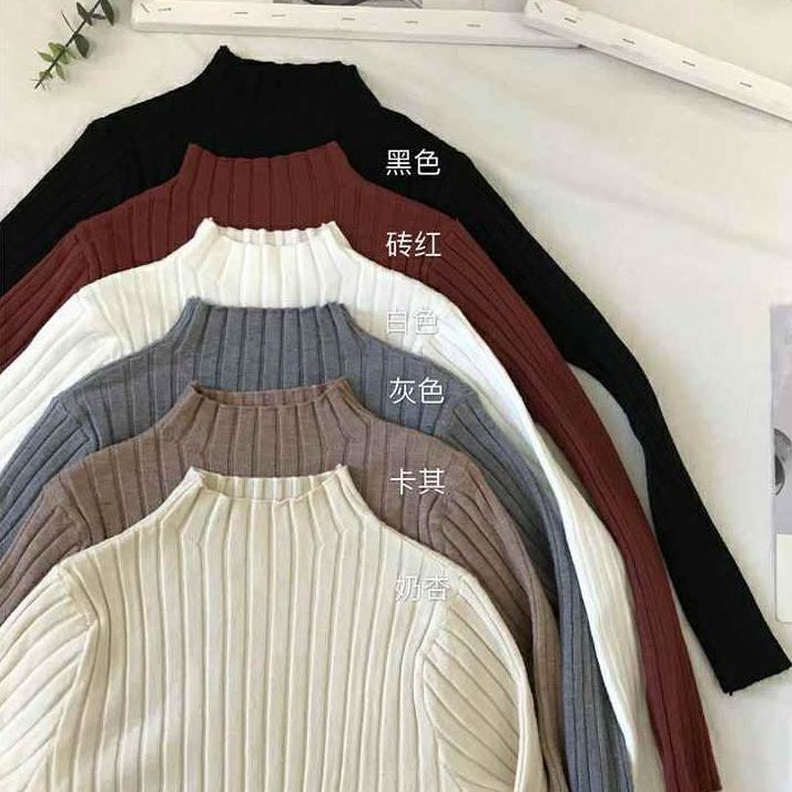 打底衫女秋冬半高领薄款针织上衣2020春秋季新款洋气百搭内搭毛衣