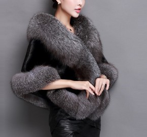 2022仿貂皮女款狐狸毛领披肩围巾斗篷 水貂皮草外套裘皮大衣