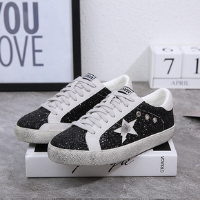 真超纤皮彩色亮片板鞋原宿街拍星星小脏鞋情侣款大码小白鞋潮款