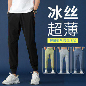 垂感冰丝裤男士休闲运动超薄夏季男裤束脚速干修身弹力空调裤子男