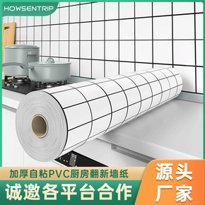 加厚pvc厨房墙纸自粘翻新宿舍厨房防油防水的贴纸耐高温壁纸批发