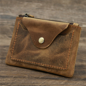 1044男女生真皮零钱包牛皮疯马棕色咖啡色拉链硬币袋复古工厂直销
