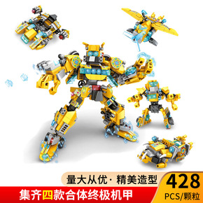 跨境黄蜂机器人4合1机甲战士拼装积木兼容乐高儿童益智玩具小颗粒