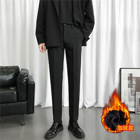 ins休闲裤子男秋冬加绒韩版潮流坠感西裤宽松百搭男士直筒西装裤