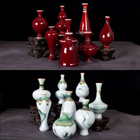 陶瓷花插 干花小花瓶 陶艺家居摆件饰品复古民族风郎红瓶HC026