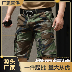唤龙户外迷彩弹力裤宽松工装裤多袋裤短裤男夏战术裤通勤短裤