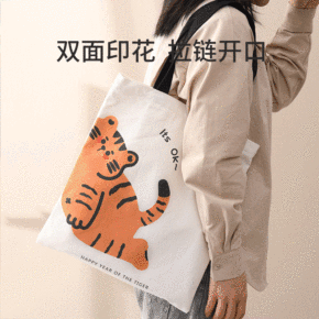 2021夏季新款大容量帆布包女学生书包袋可爱老虎棉麻包包跨境代发