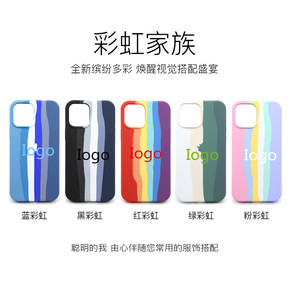 适用iphone14ProMAX手机壳彩虹液态硅胶苹果13全包保护套12软壳XR
