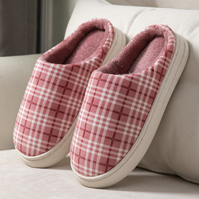 2022新款棉拖鞋女冬季家居室内厚底防滑格子特价情侣拖鞋地板拖男