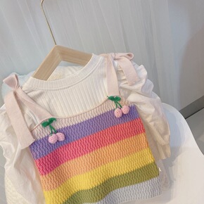 童毛衣2022春款女童时尚条纹吊带针织马甲儿童针织衫T42