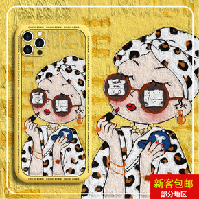 卡通富婆适用于苹果12液态硅胶手机壳iphonex全包镜头壳13pro网红