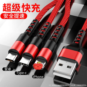 新款夜市圆形一拖三数据线适用于苹果 type-c 安卓 三合一快充线