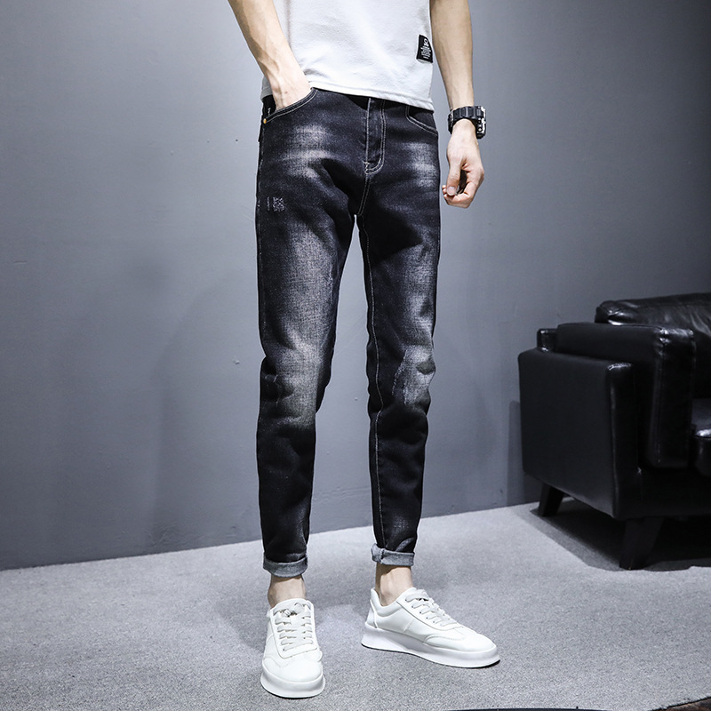 男士牛仔裤修身小脚韩版潮流2021新款弹力休闲长裤子男裤夏季薄款