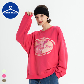 TIDEEKU卡通卫衣奶牛毛巾绣带口袋圆领长袖休闲宽松运动男女情侣
