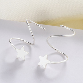 源头厂货S925银耳饰2022年新款幸运星螺旋圈耳环镀白金创意耳钉女