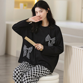 曼莉泰纯棉睡衣女秋长袖长裤2022秋冬款韩版简约可外穿休闲家居服