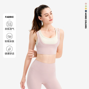 运动内衣女美背防震聚拢跑步定型收腹瑜伽服文胸假两件健身服背心