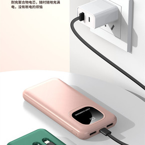 自带线充电宝数字显示屏20000毫安可拆线快充移动电源可印刷图案